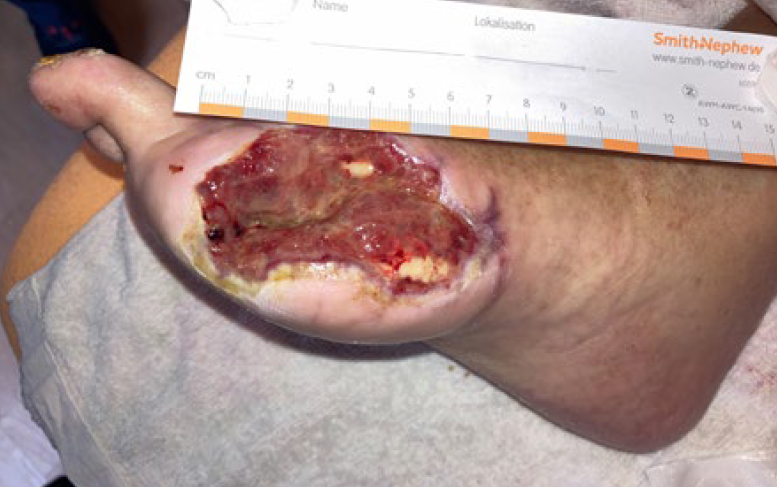 Anwendungsbeispiel Diabetisches Fußulcus mit pAVK und Z.n. D1 Amputation