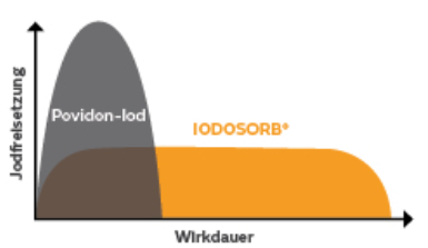 | IODOSORB◊ ist ein antimikrobieller Wundverband aus Cadexomer-Mikro-Kügelchen: runde Stärke-Strukturen, die 0,9% elementares Iod enthalten. Das Iod ist physisch an die Kügelchen gebunden und wird erst freigesetzt, wenn diese in Kontakt mit Wundflüssigkeit kommen. IODOSORB◊ bietet eine anhaltende antimikrobielle Aktivität über 3 Tage (in-vitro). |